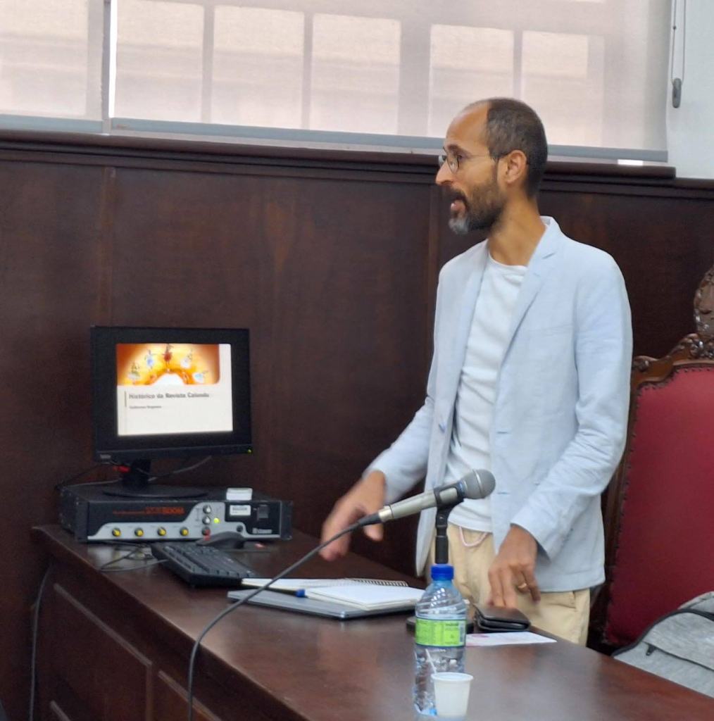 Uma vez mais, como ocorreu nos encontros anteriores, o Calundu esteve presente, já como Instituto fundado, apresentando seu trabalho. Apresentamos a mesa redonda “A Revista Calundu como projeto político-pedagógico decolonial no campo dos estudos afrorreligiosos”, que foi organizada pelas pessoas fundadoras do Instituto Adélia Mathias, Andrea Carvalho, Guilherme Nogueira, Hans Carrillo e Nathalia Fernandes, juntamente à Conselheira Tânia Mara Campos de Almeida. Em São Paulo, estiveram presentes Andrea, Guilherme, Hans e Nathália.